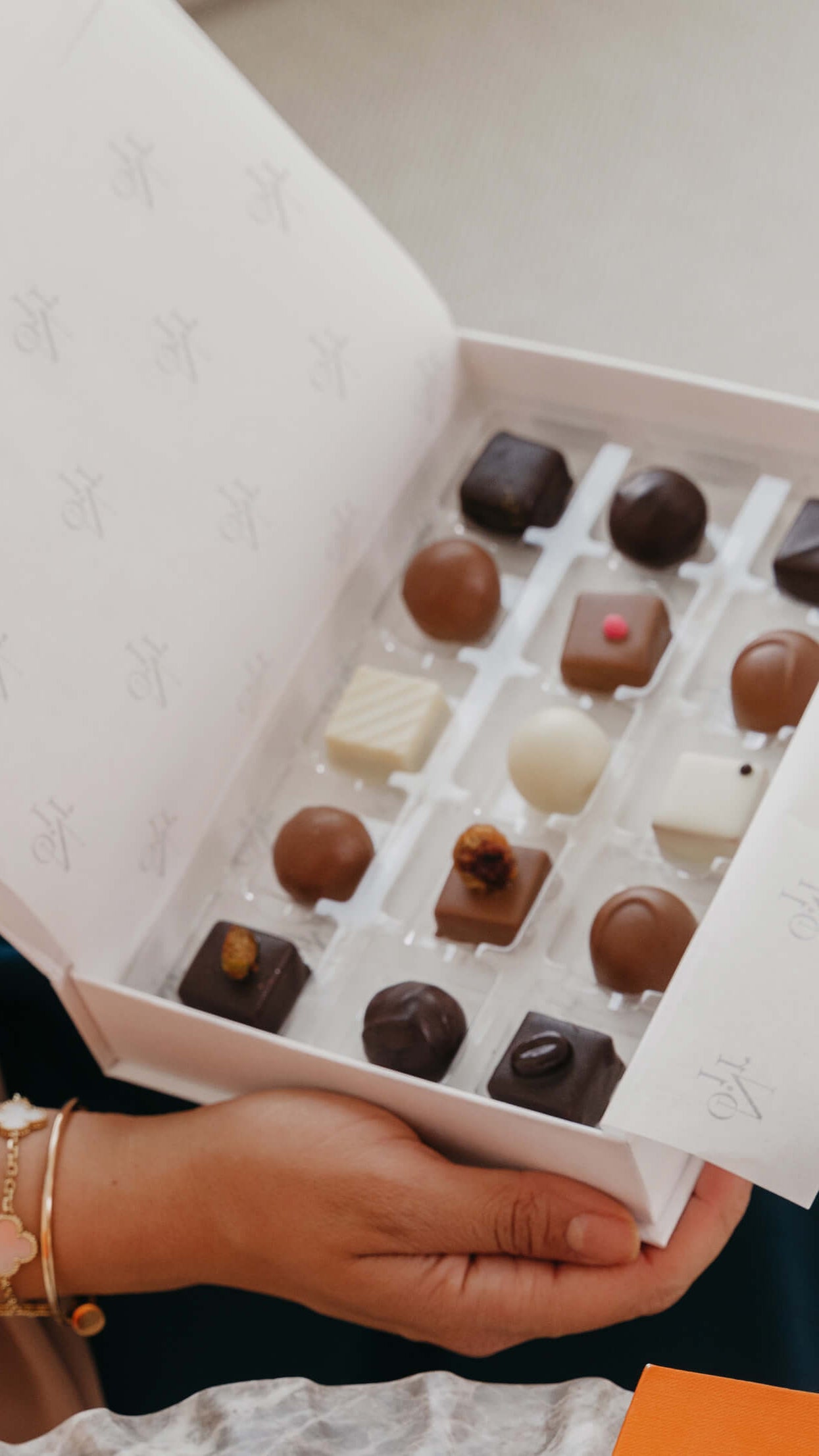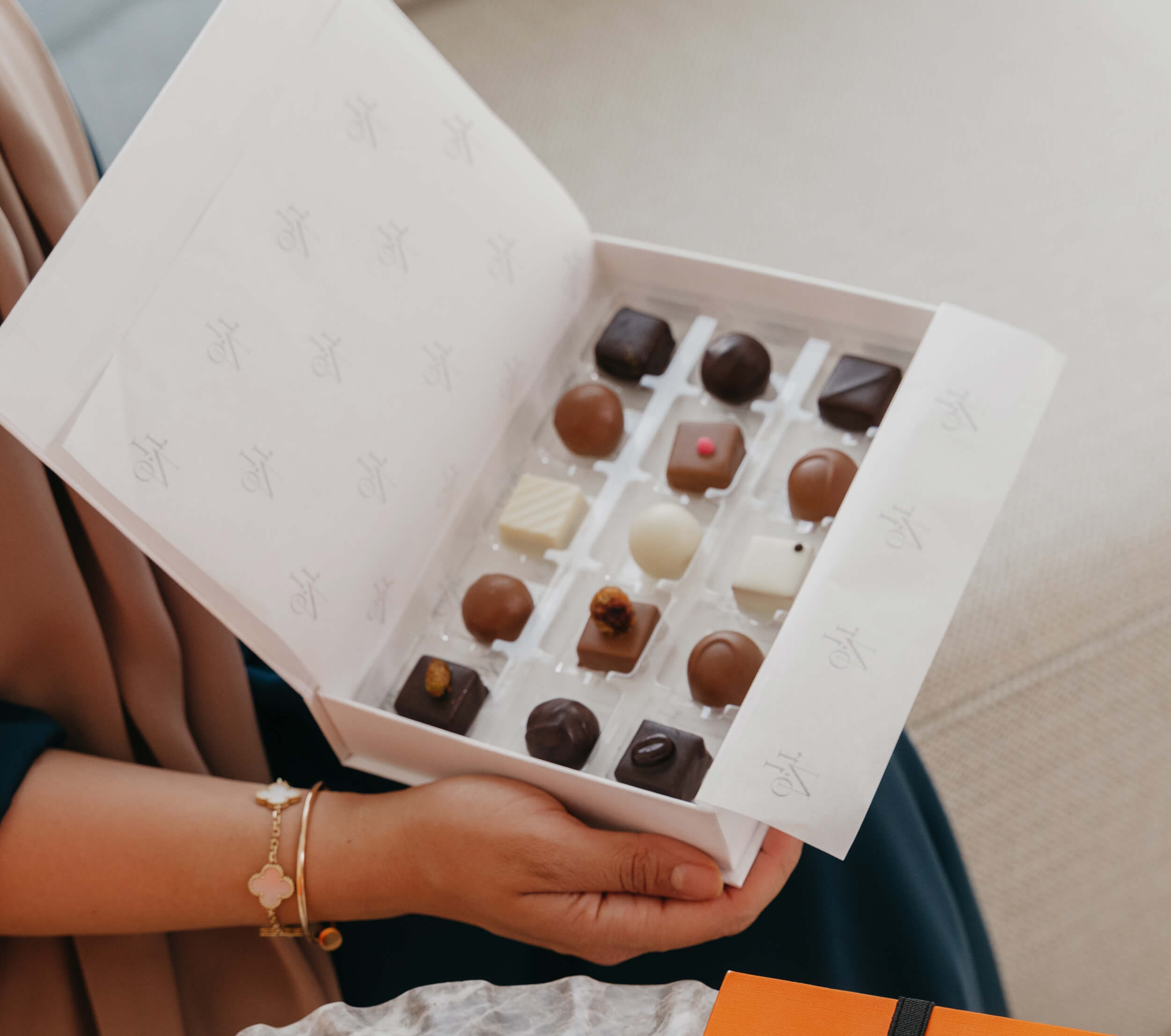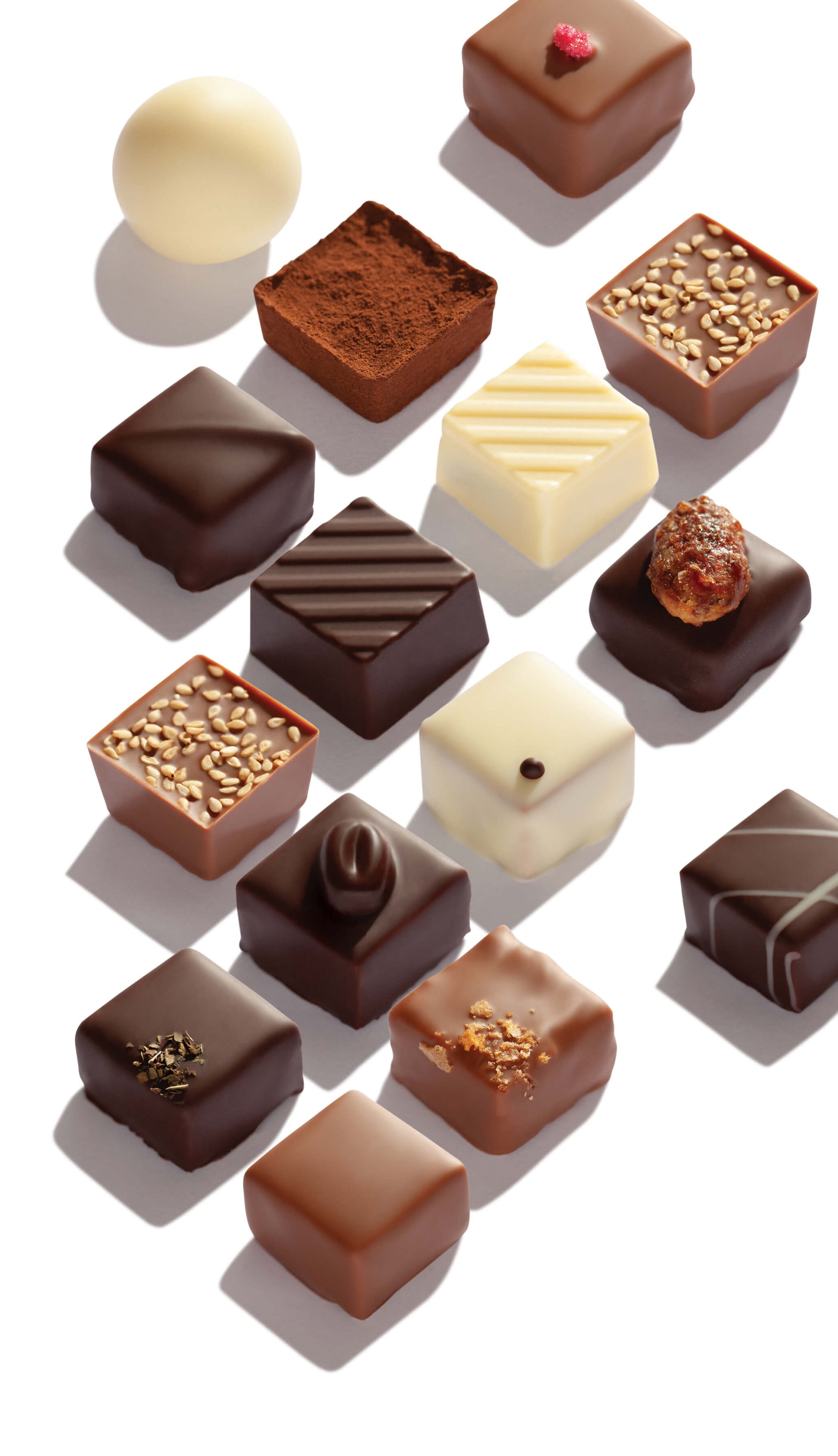 جياندوجاس والكراميل: اللموند ، شوكولاتة بيضاء باللوز، مربعات شوكولاتة الحليب والبندق والسمسم ، كراميل يوزو مربعات الشوكولاتة البيضاء ، سانشو بيبر شوكولاتة غامقه مربعه ، ترافل الليمون والكراميل الأبيض