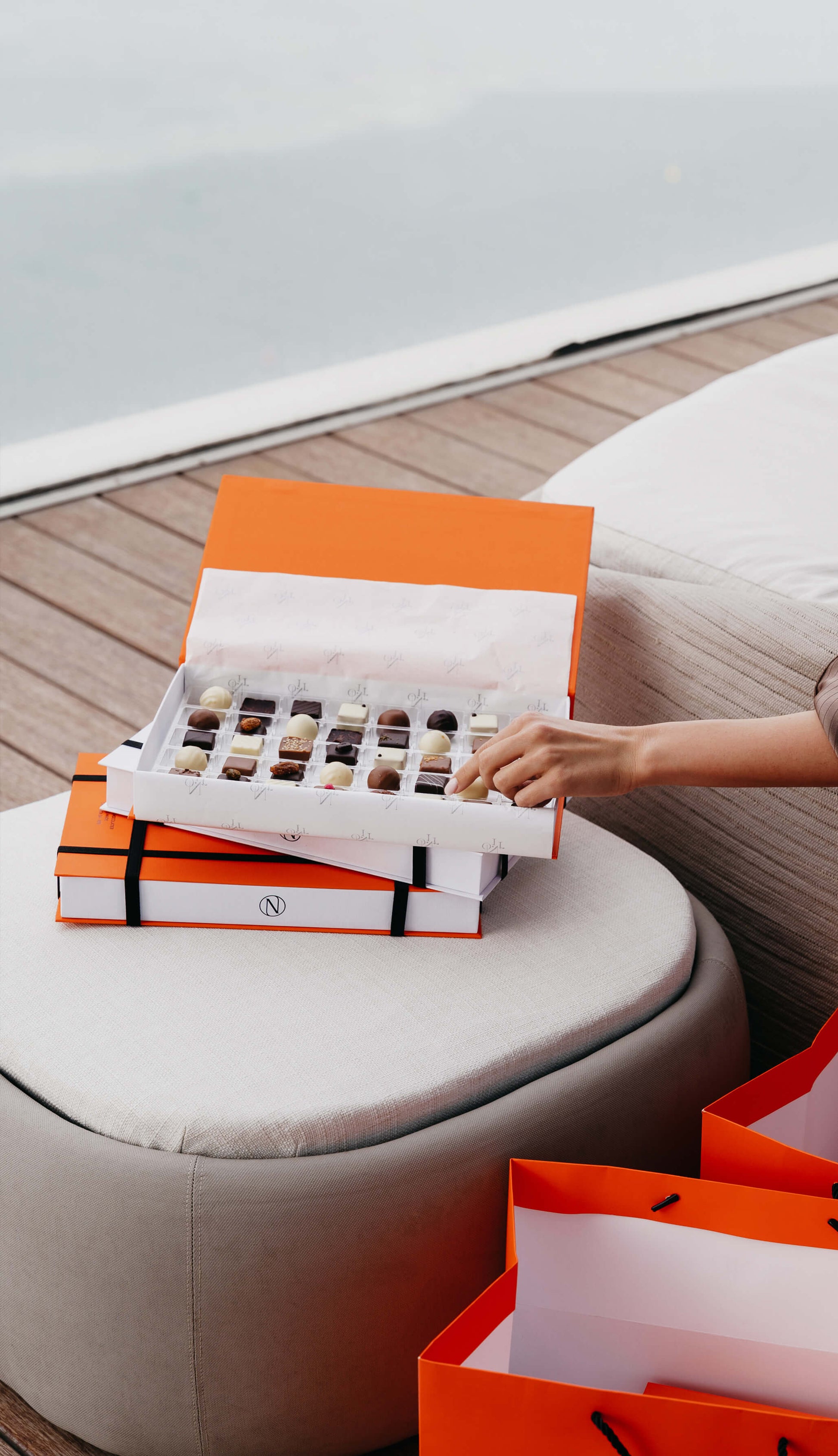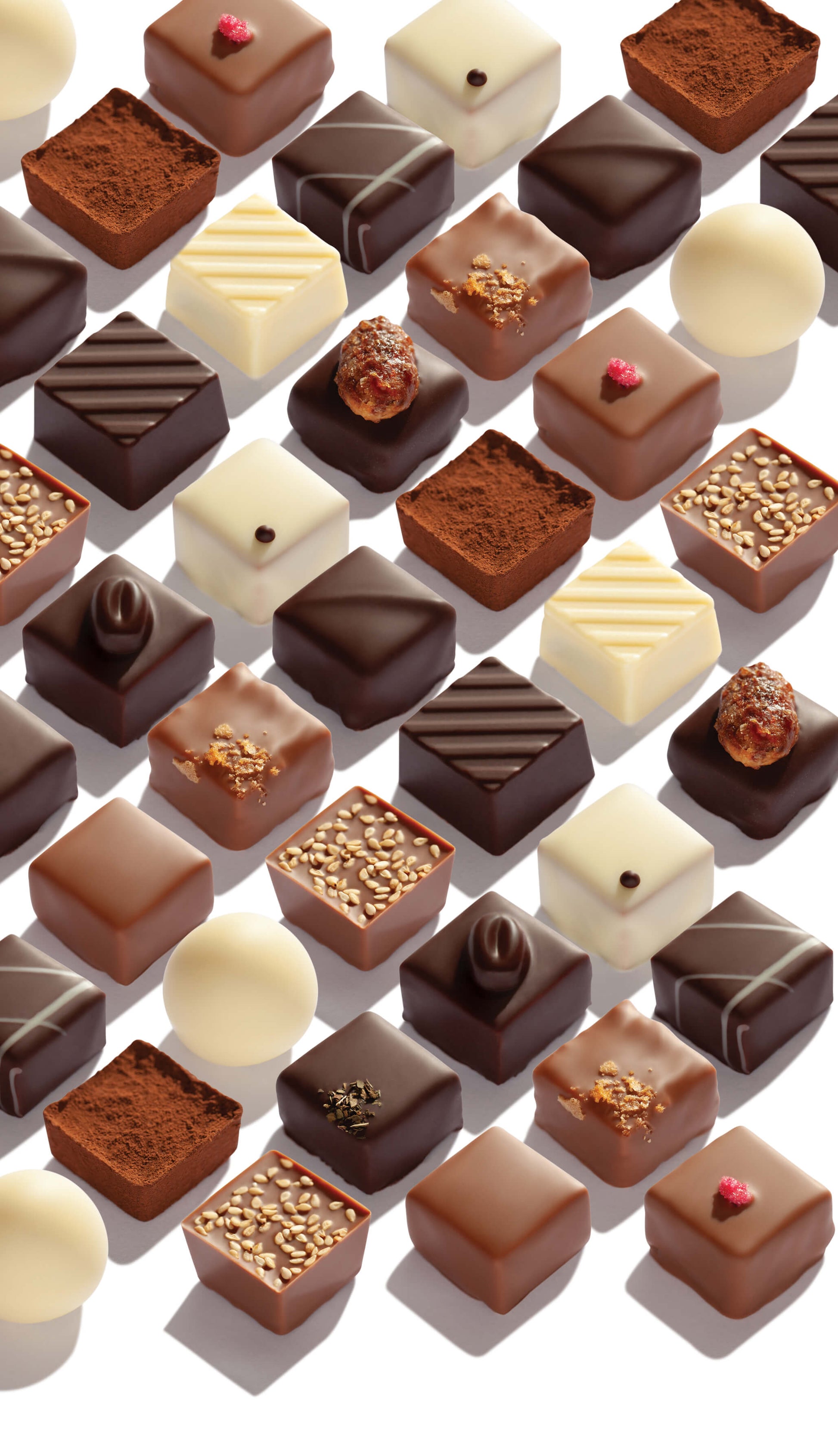 جياندوجاس والكراميل: اللموند ، شوكولاتة بيضاء باللوز، مربعات شوكولاتة الحليب والبندق والسمسم ، كراميل يوزو مربعات الشوكولاتة البيضاء ، سانشو بيبر شوكولاتة غامقه مربعه ، ترافل الليمون والكراميل الأبيض