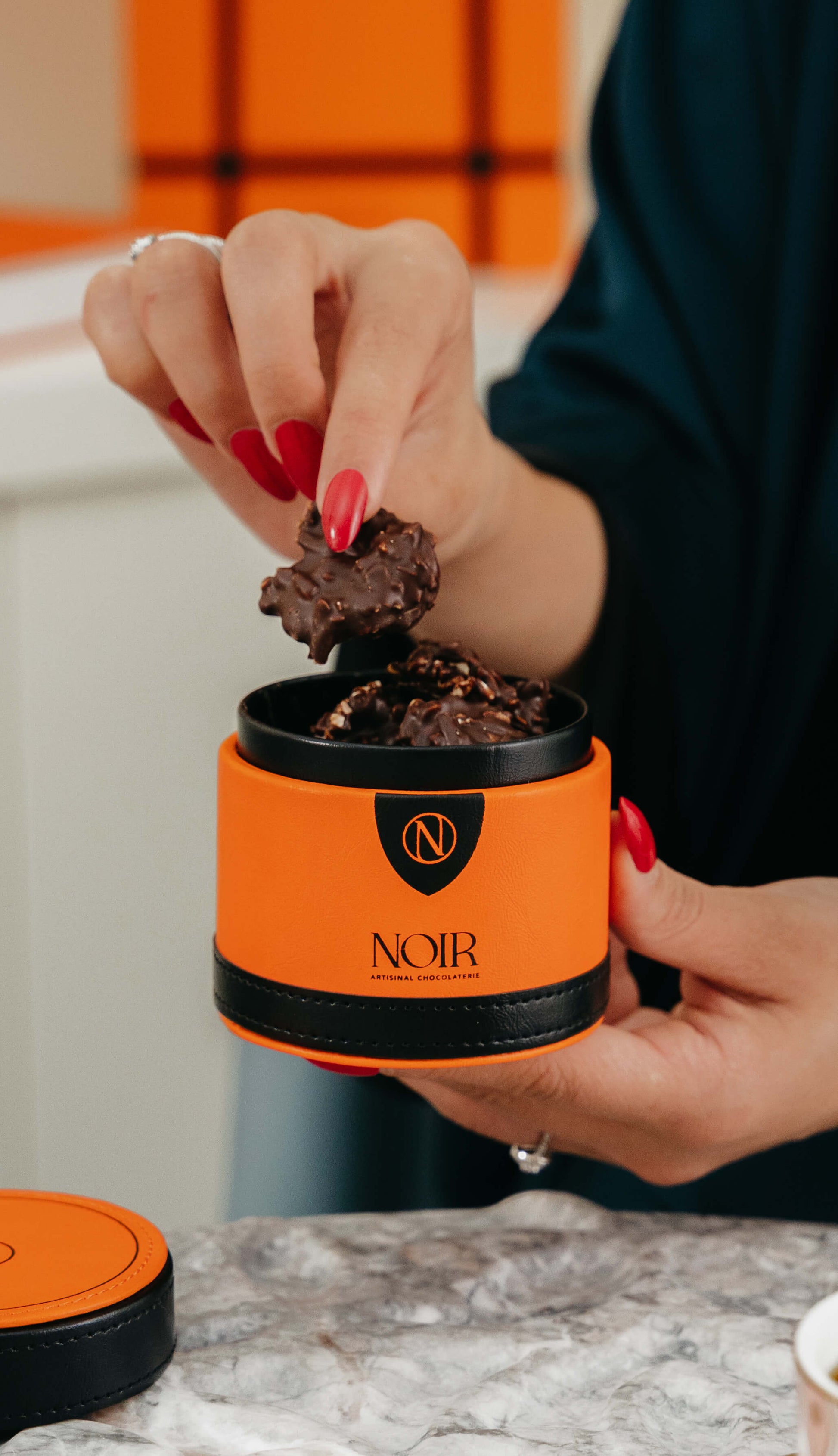 The exquisite fusion of Ecuadorian roasted Almonds' sweetness embraced by the rich intensity of Dark Chocolate