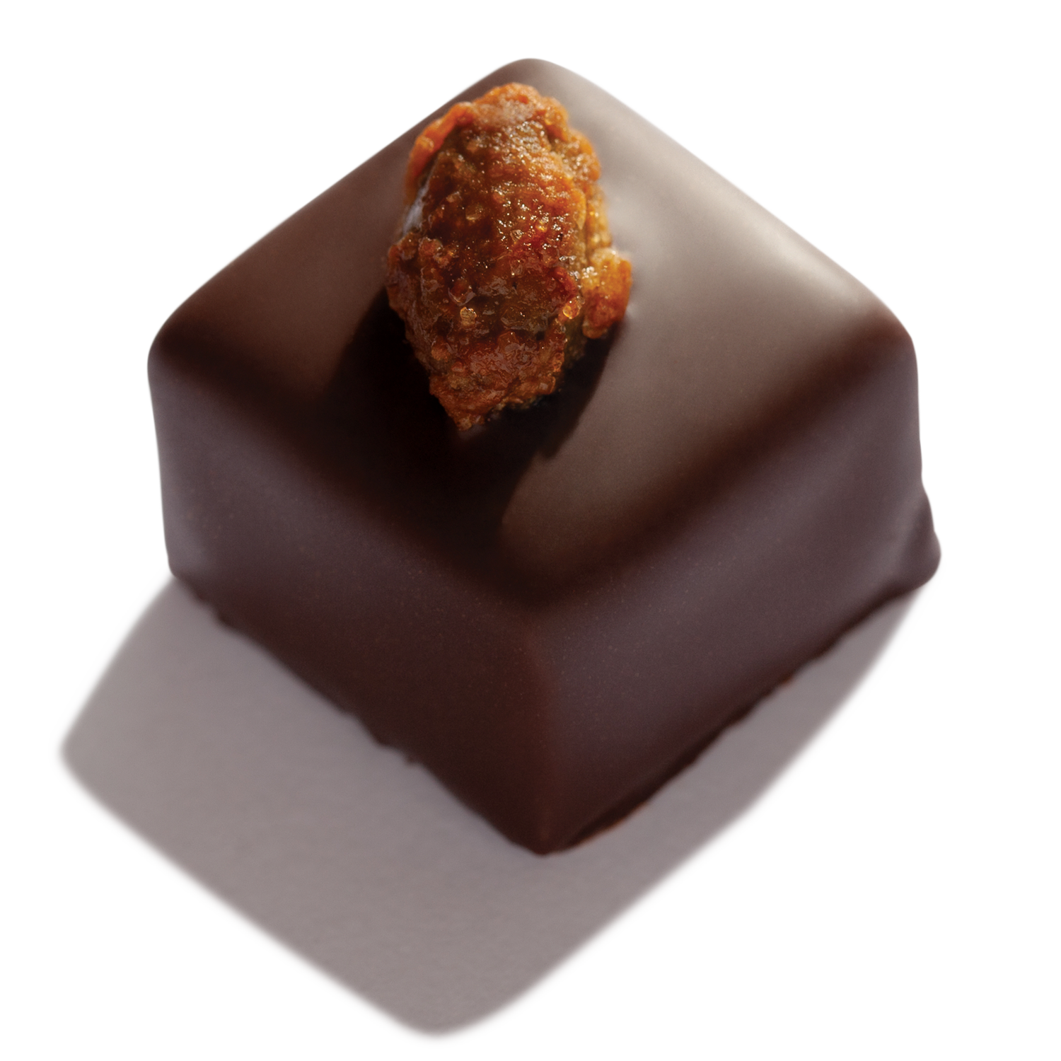 Ganaches & Pralines: Dark Pistachio, Venezuela 65% and Cocoa Nibs, and Hazelnut